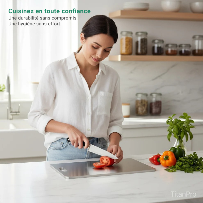 Oui, les propriétés naturelles du titane rendent la planche TitanPro résistante aux taches et à la déformation, pour une durabilité sans entretien.